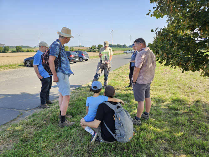 Unter dem Motto „Fantastische Feldhamster und wo sie zu finden sind“ haben wir uns am 16. August 2025 zu einer Exkursion rund um den Feldhamster aufgemacht. Unter Leitung von Gebietsbetreuer Manfred Sattler ging es auf die Stoppeläcker der Gemarkungen Maintal.
